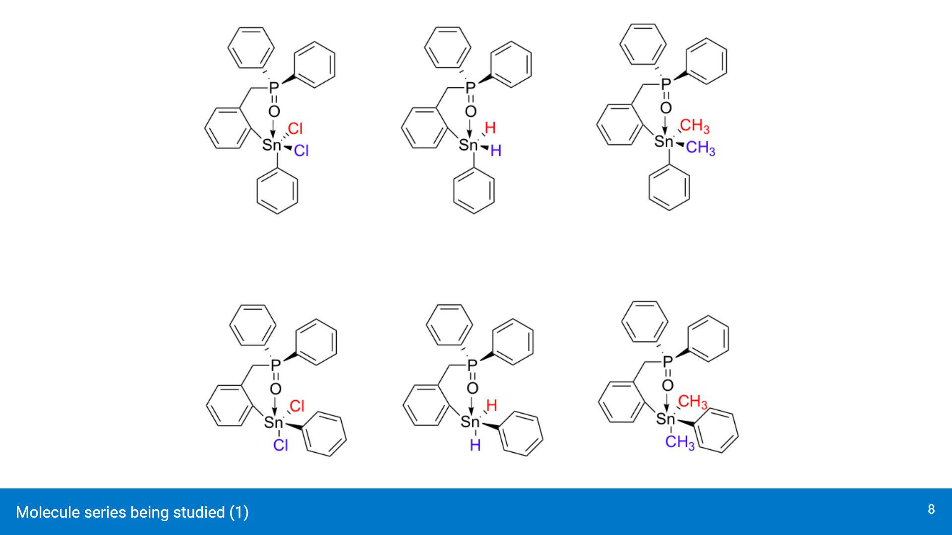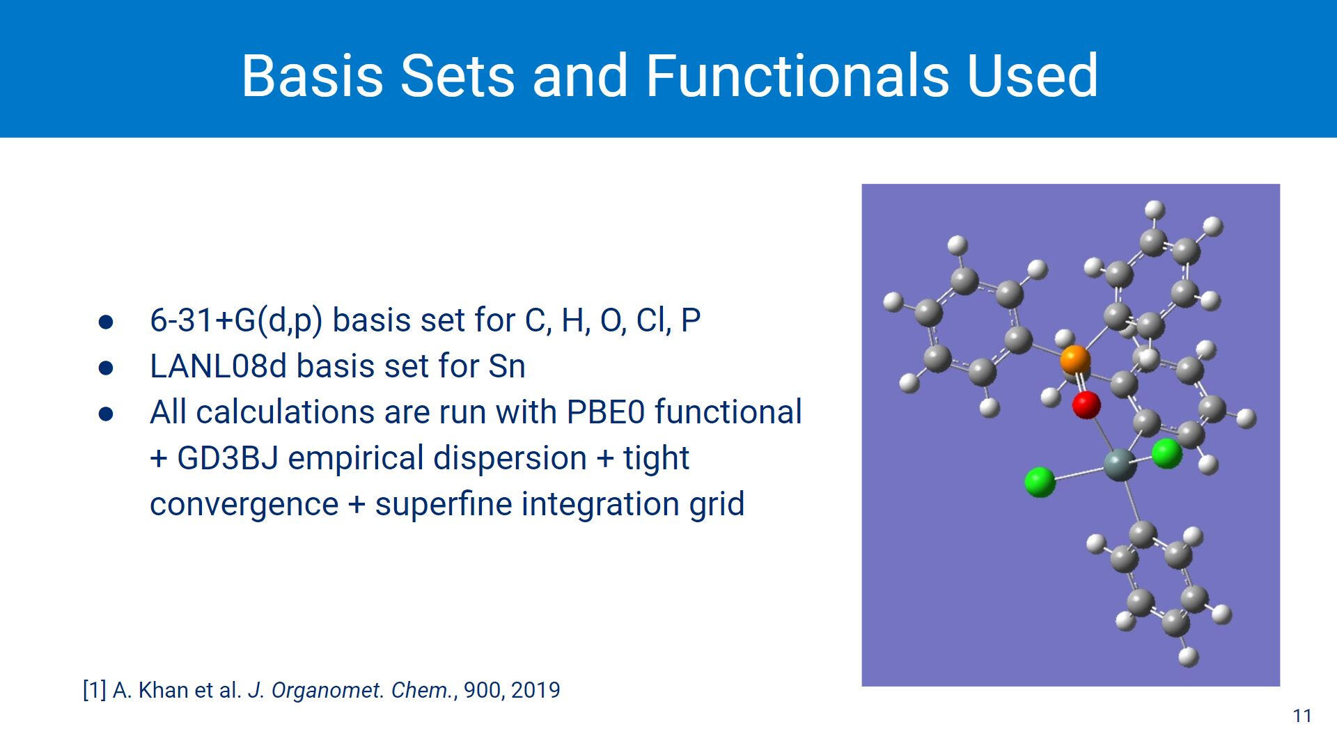 For our DFT calculations, all of the parameters were kept the exact same for all calculations and done in Gaussian 16. The basis set combination of LANL08d for Sn and 6-31+G(d,p) for C, H, O, Cl and P along with the PBE0 functional + GD3BJ dispersion have been shown in previous DFT studies to be the best for modelling hypercoordinate Sn systems.