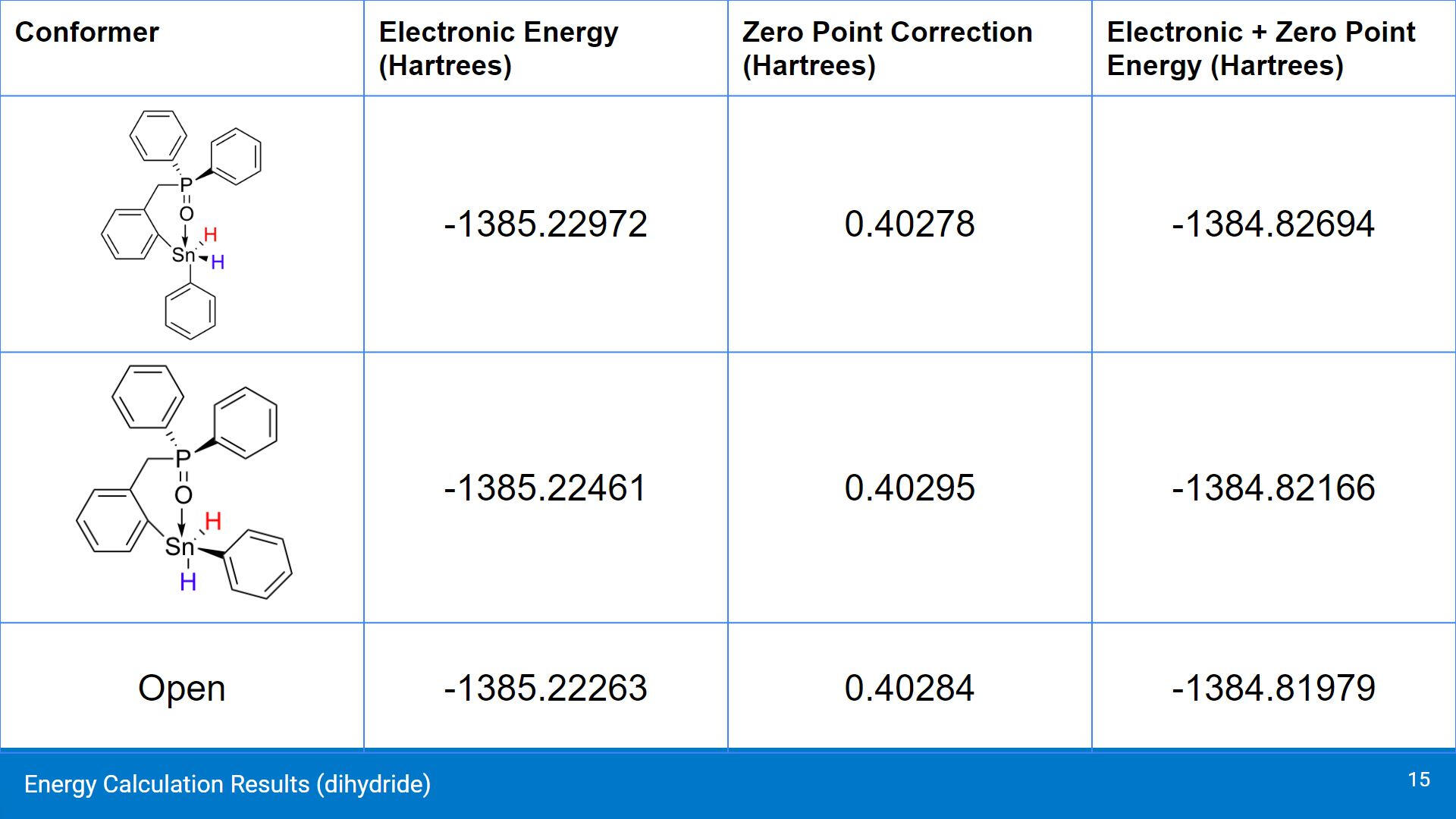 Though these structures won't be covered in the presentation, the conformers with the same ligands attached to the Sn center will be used mostly to study how they affect the Sn-O interaction.